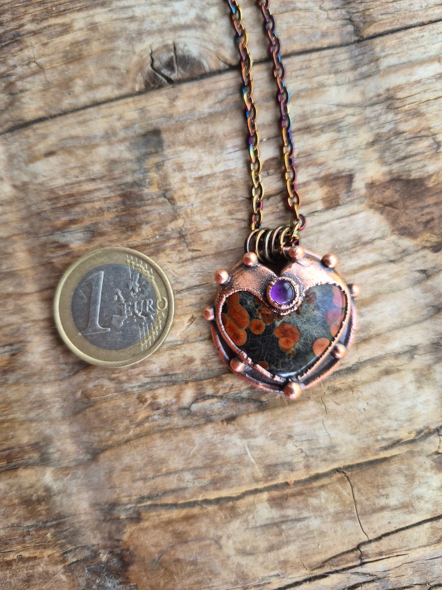 Il Cerchio dell'Anima: Pendente Cuore in Ossidiana Peanut e Ametista