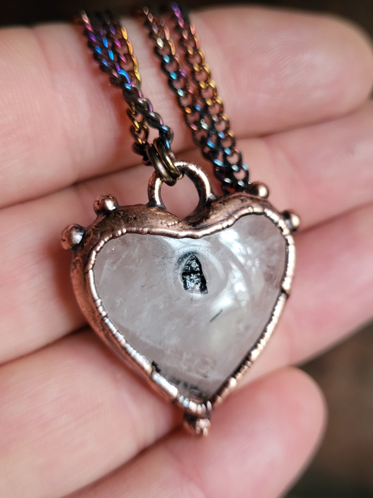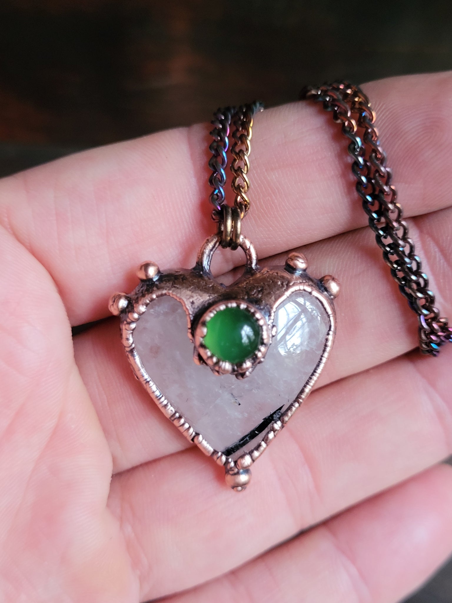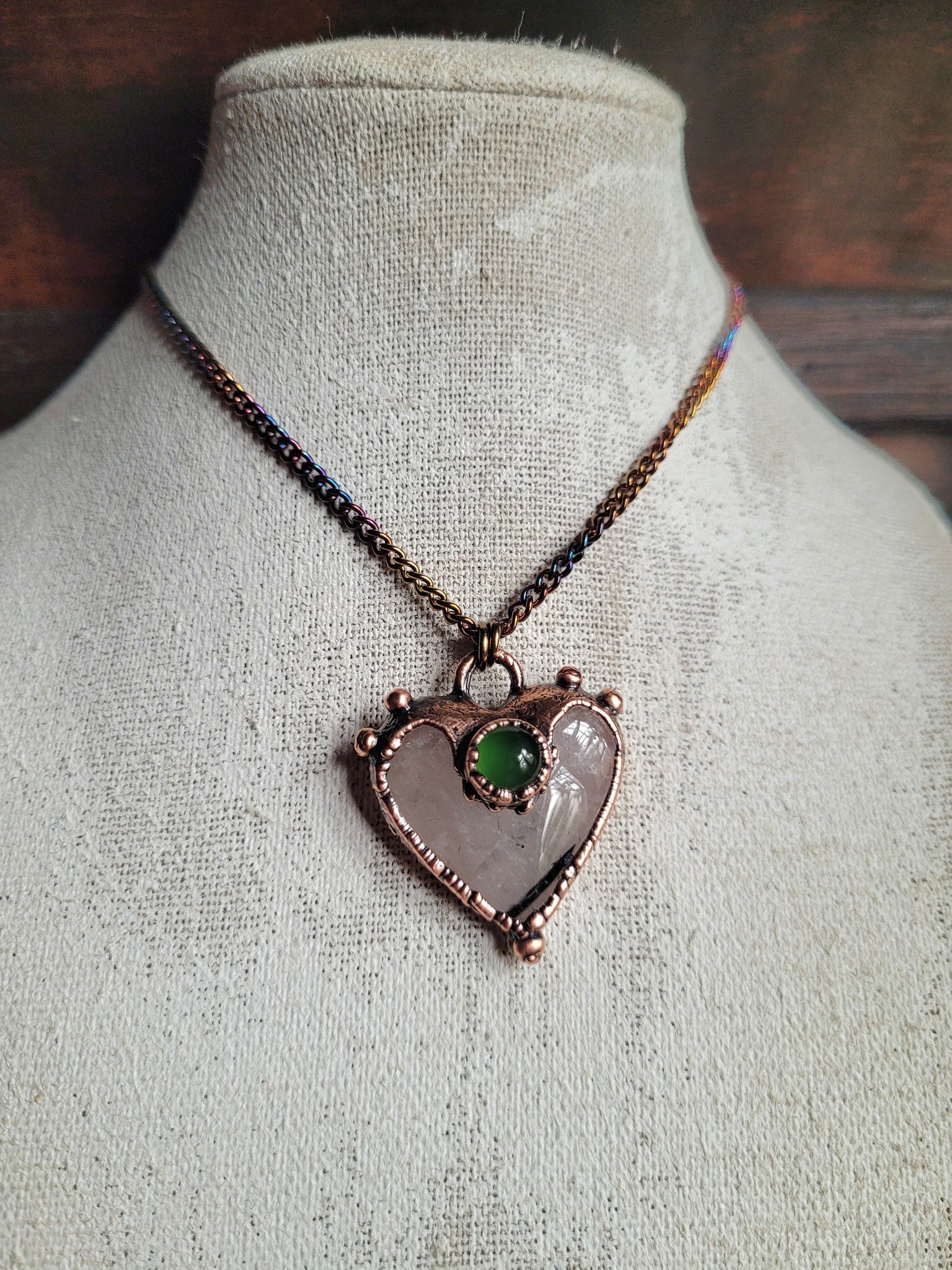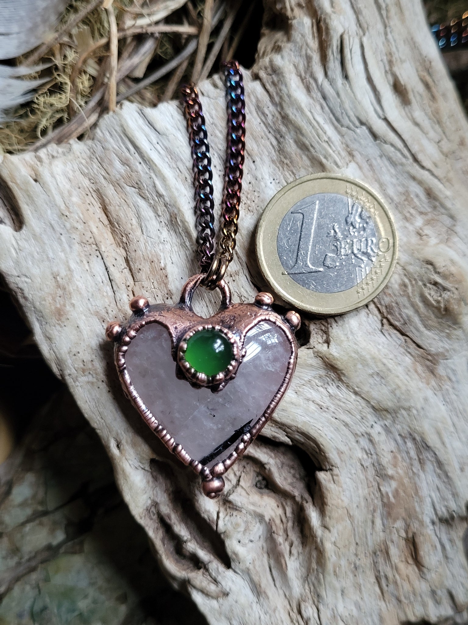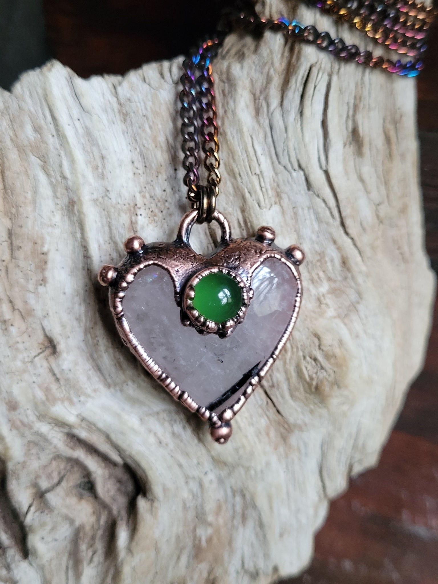 Lasciati avvolgere dalla magia di questo pendente unico, un cuore di cristallo luminoso, nato dall'unione di due gemme preziose: