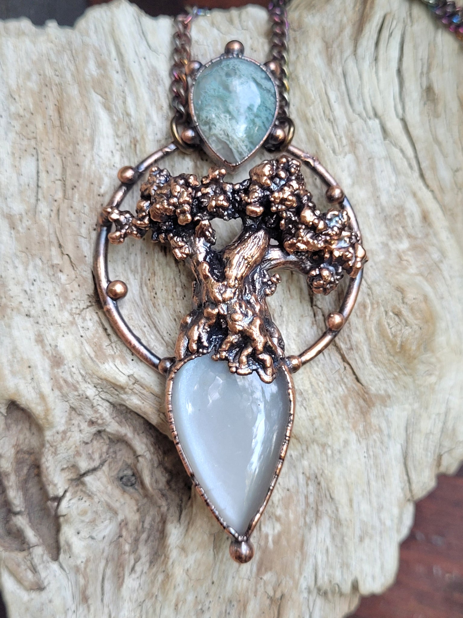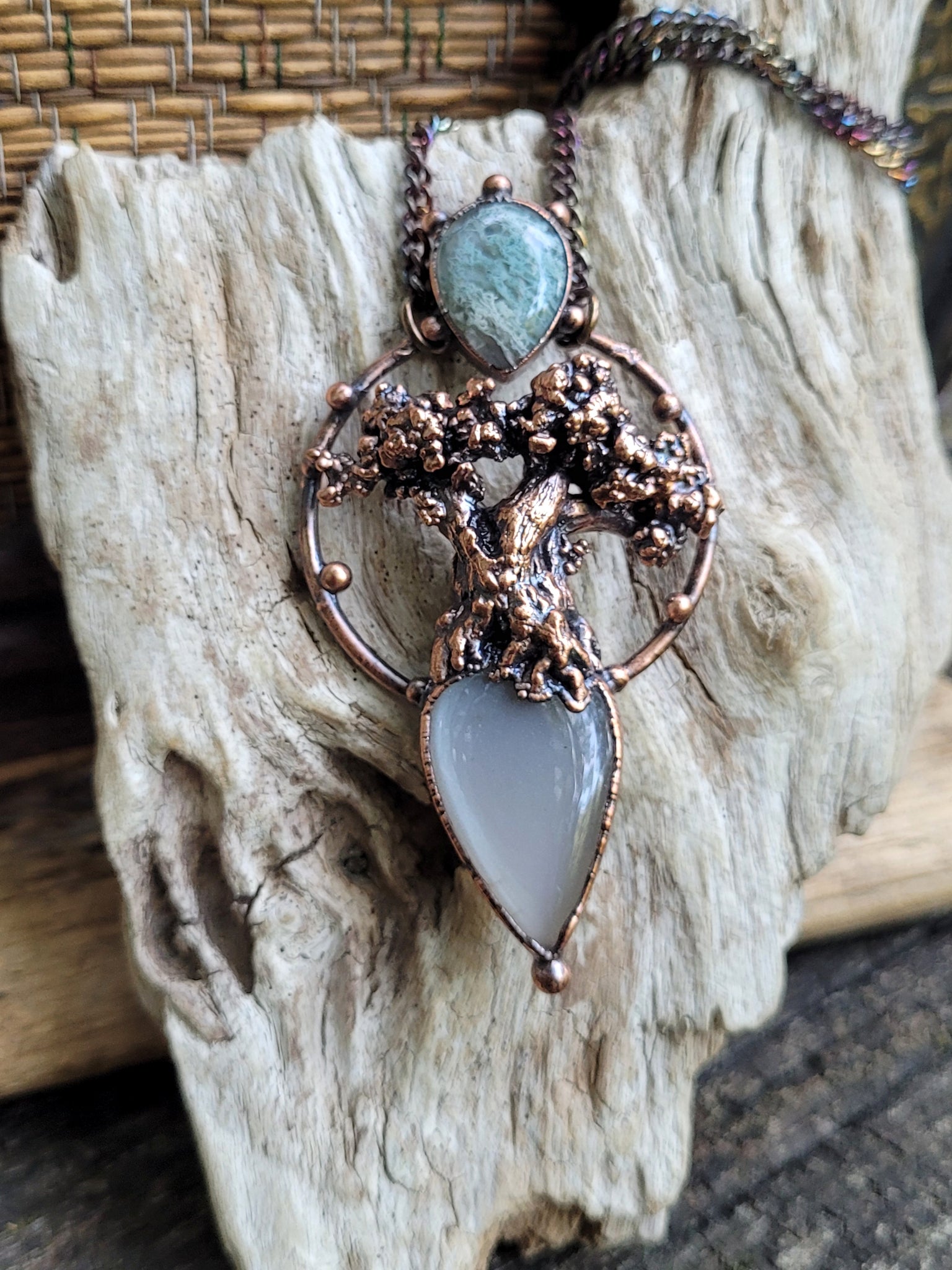 Gioiello realizzato con Agata muschiata ed Adularia grigia.