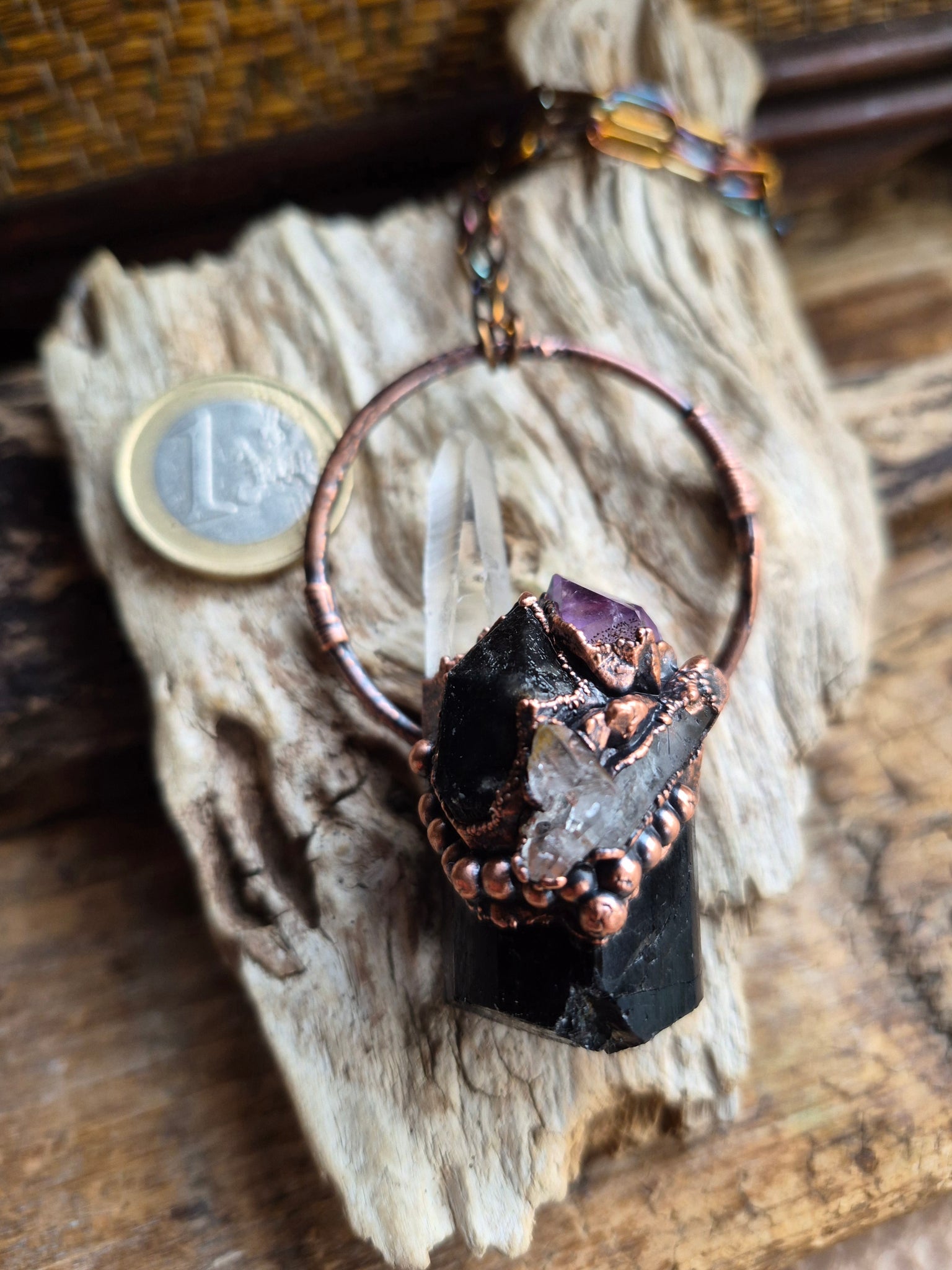 L'abbraccio caldo del rame completa questo amuleto unico nel suo genere.
