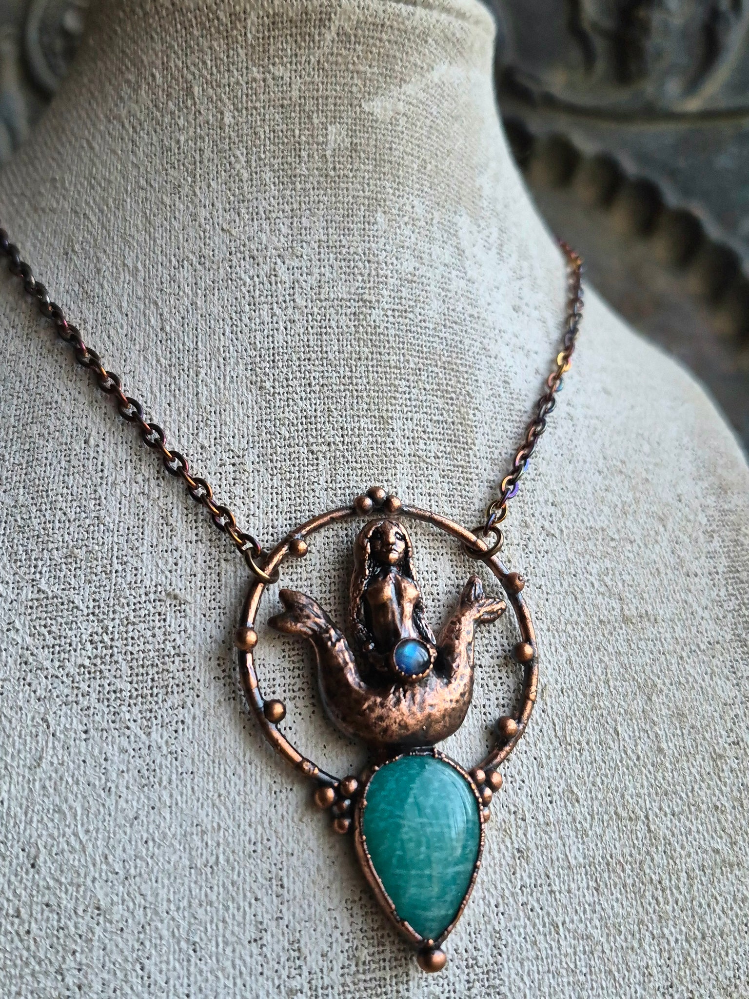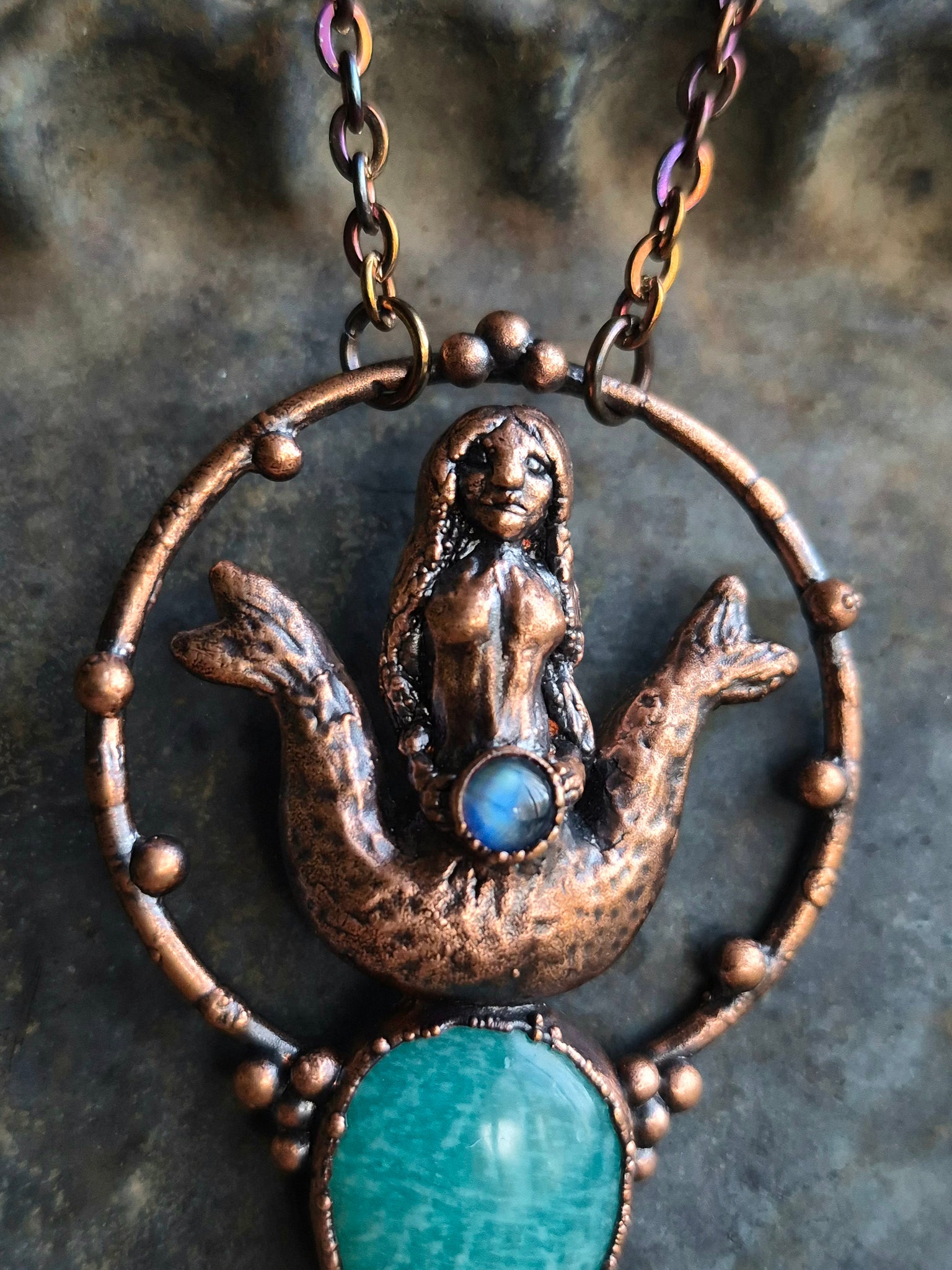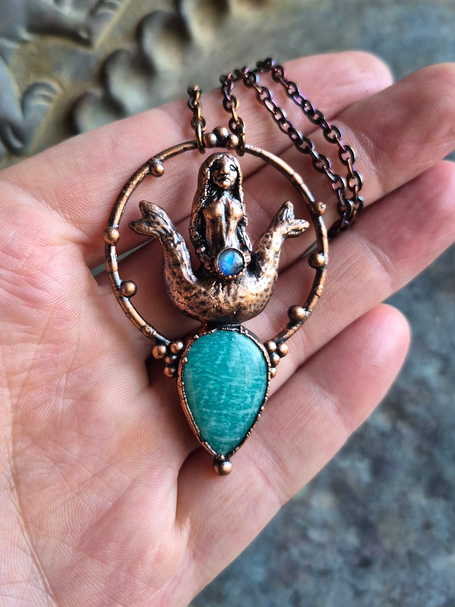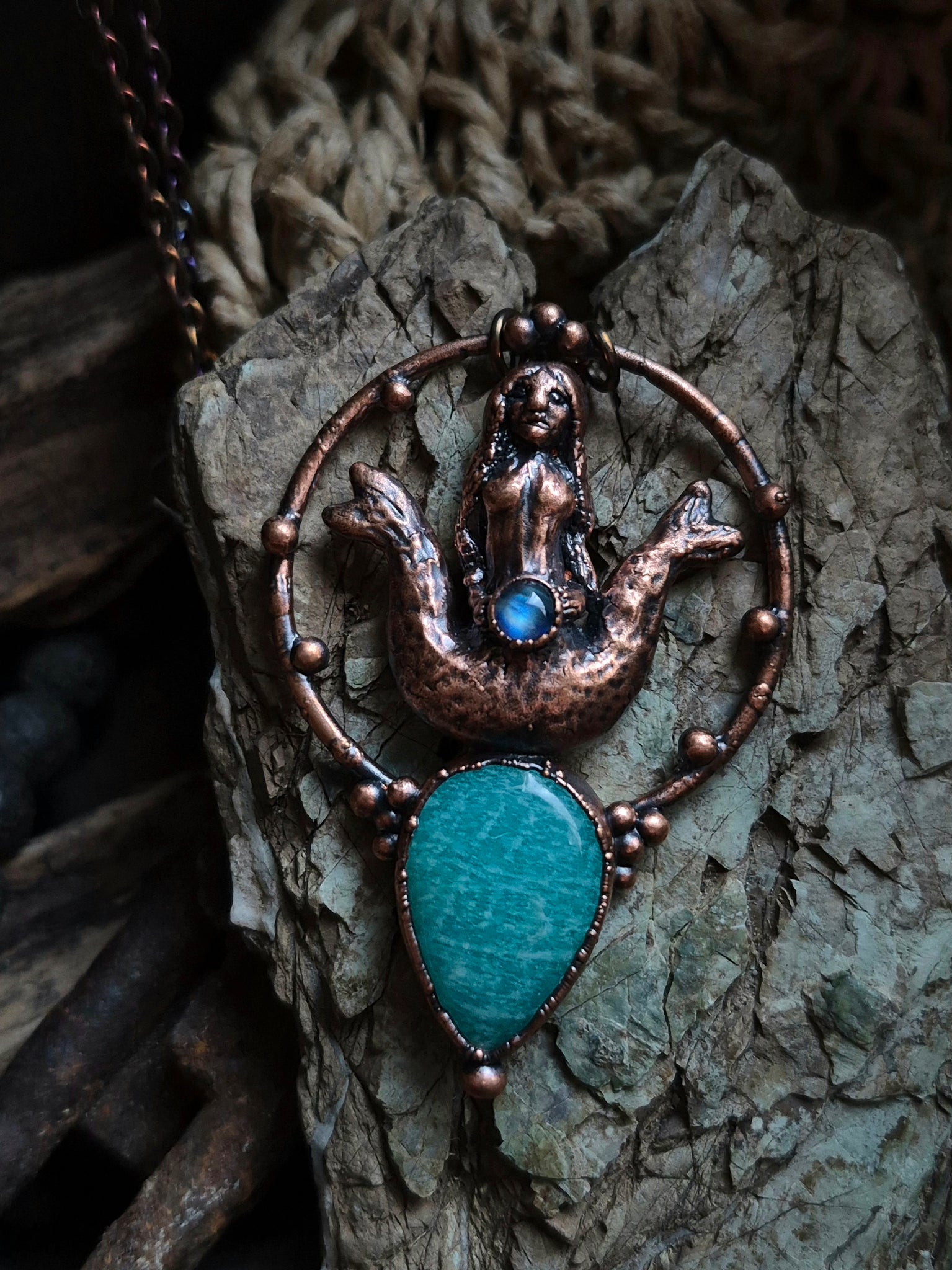 - Labradorite Bianca: Custodita tra le mani della Sirena, emana bagliori di luce lunare, simbolo della forza generatrice che risveglia il sacro femminino.
