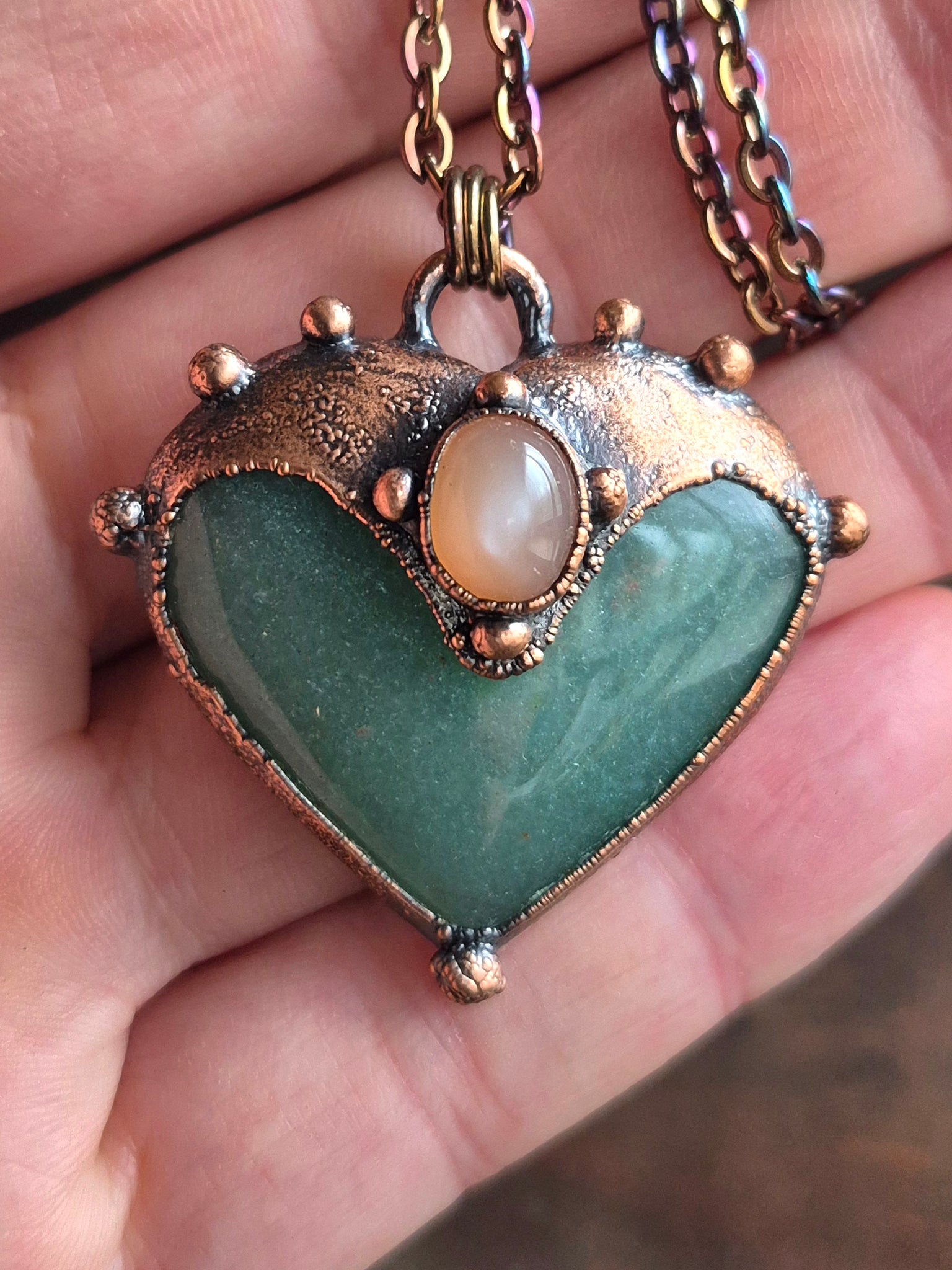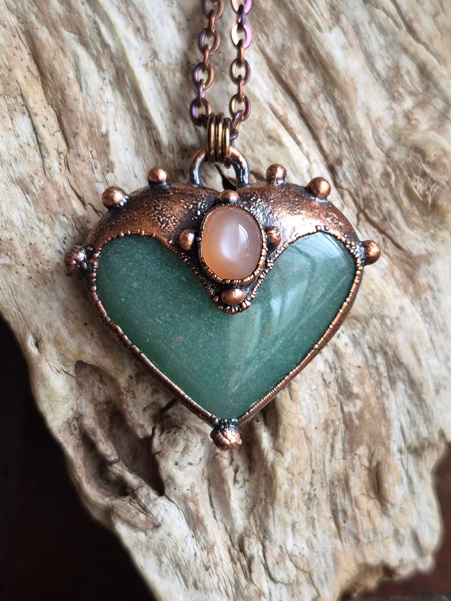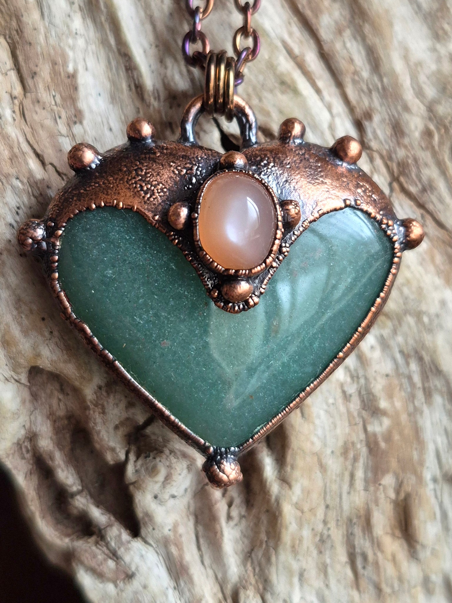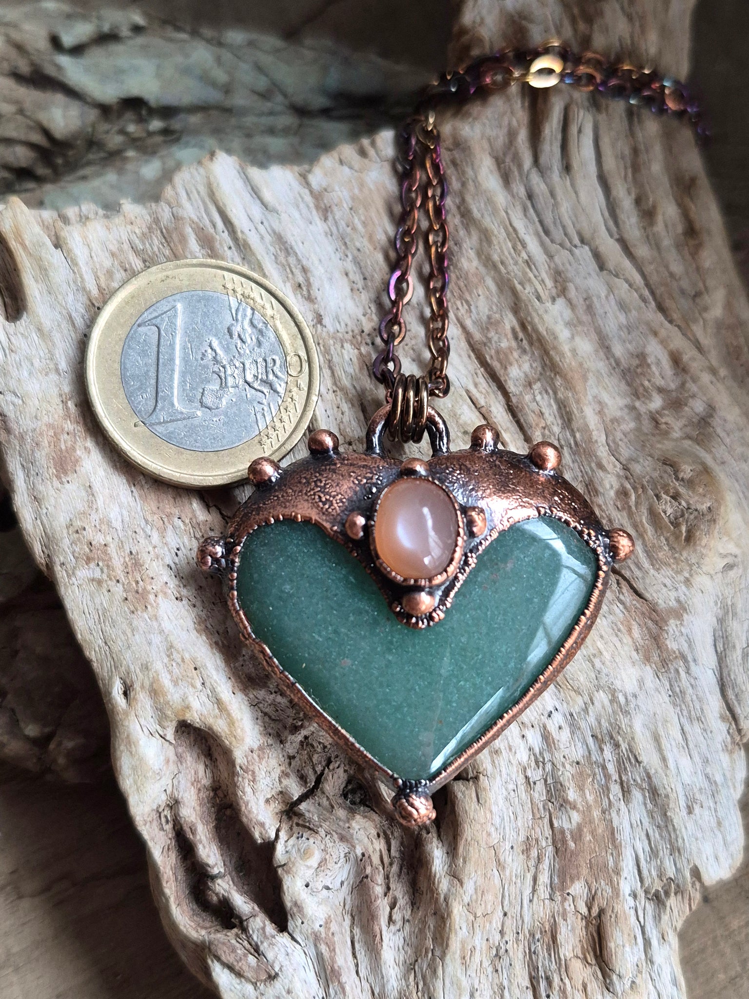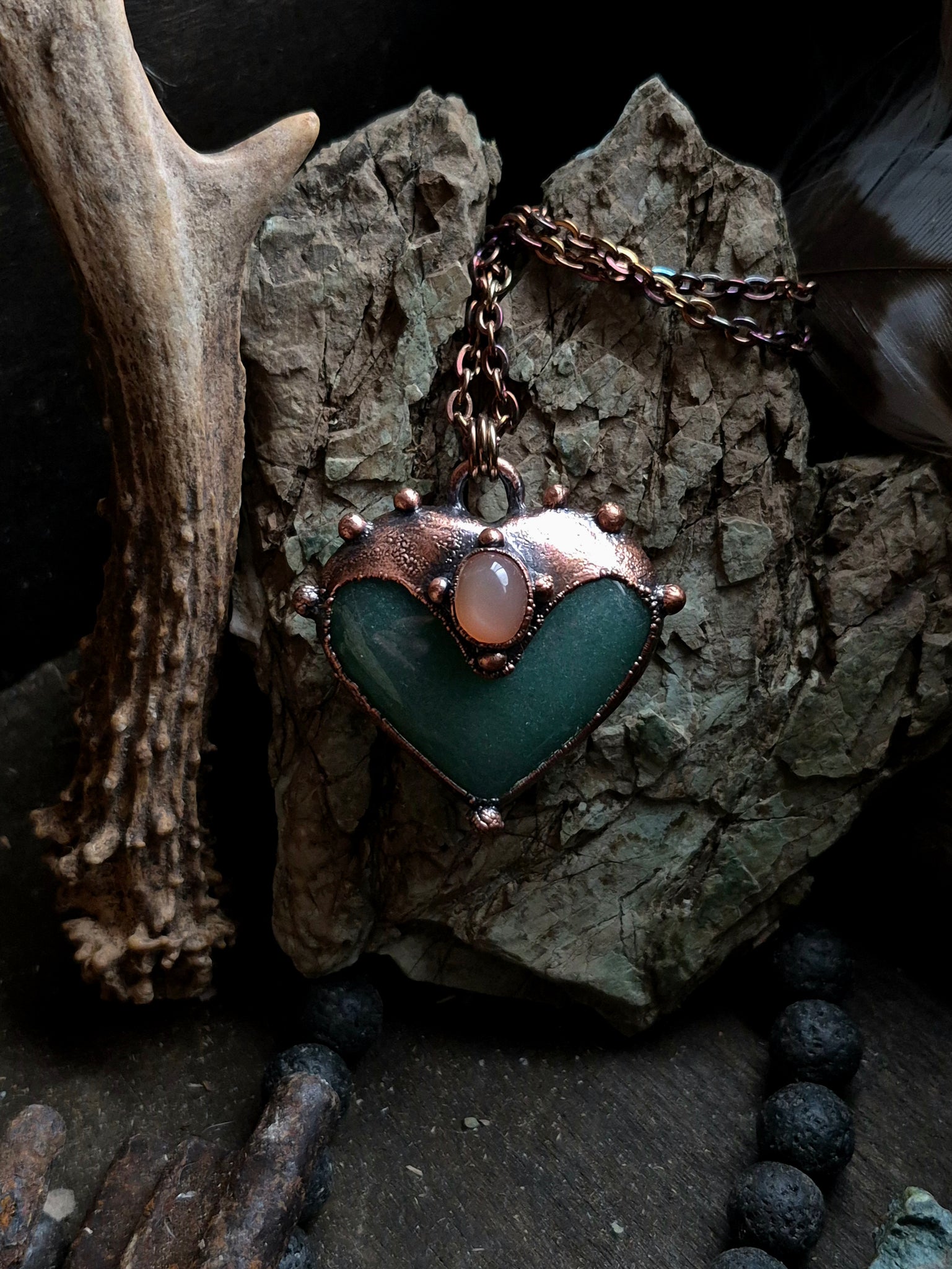 La montatura in rame con patina anticata conferisce al pendente un fascino vintage, un tocco di saggezza senza tempo che si adatta a ogni stile e occasione.