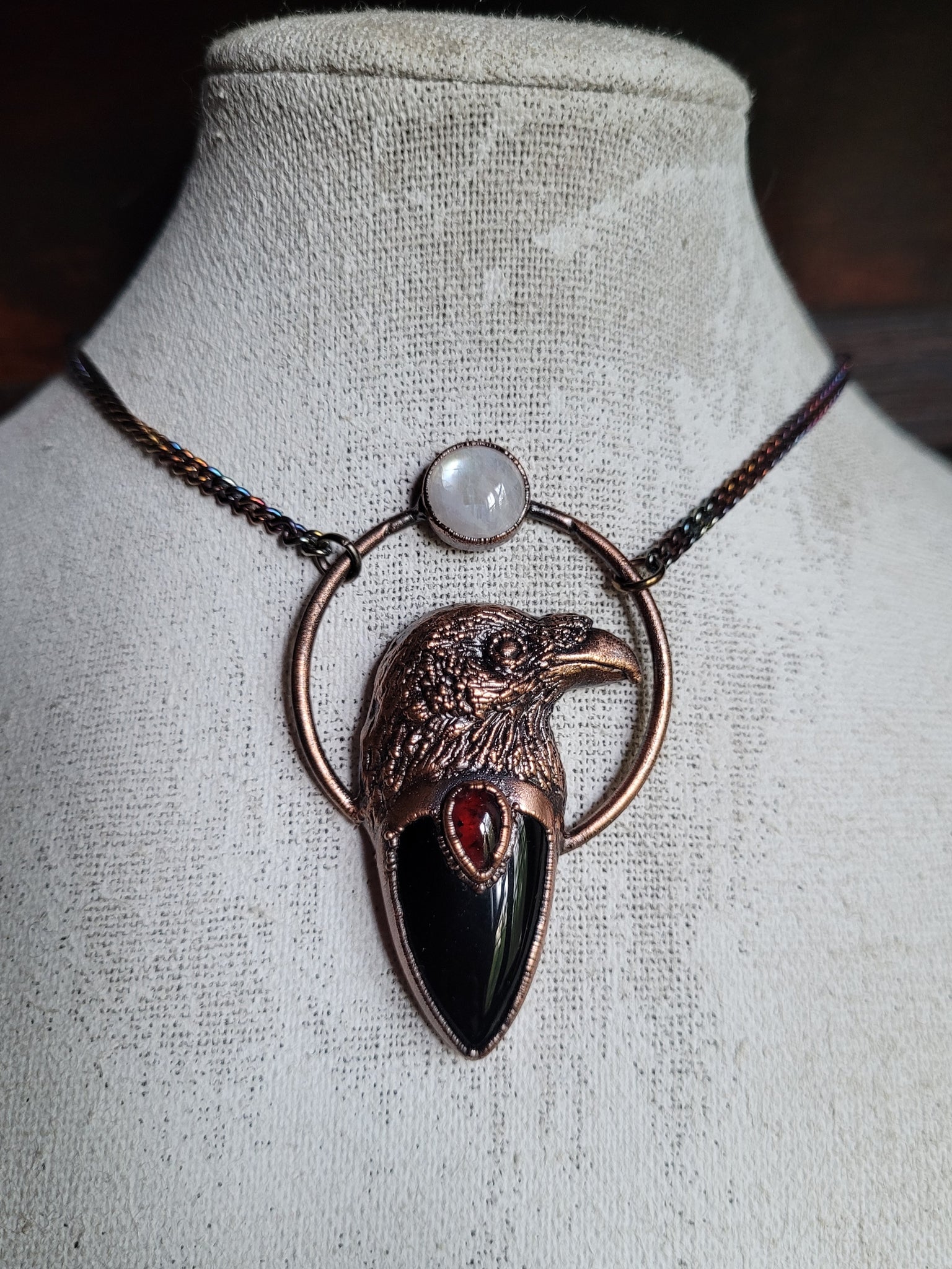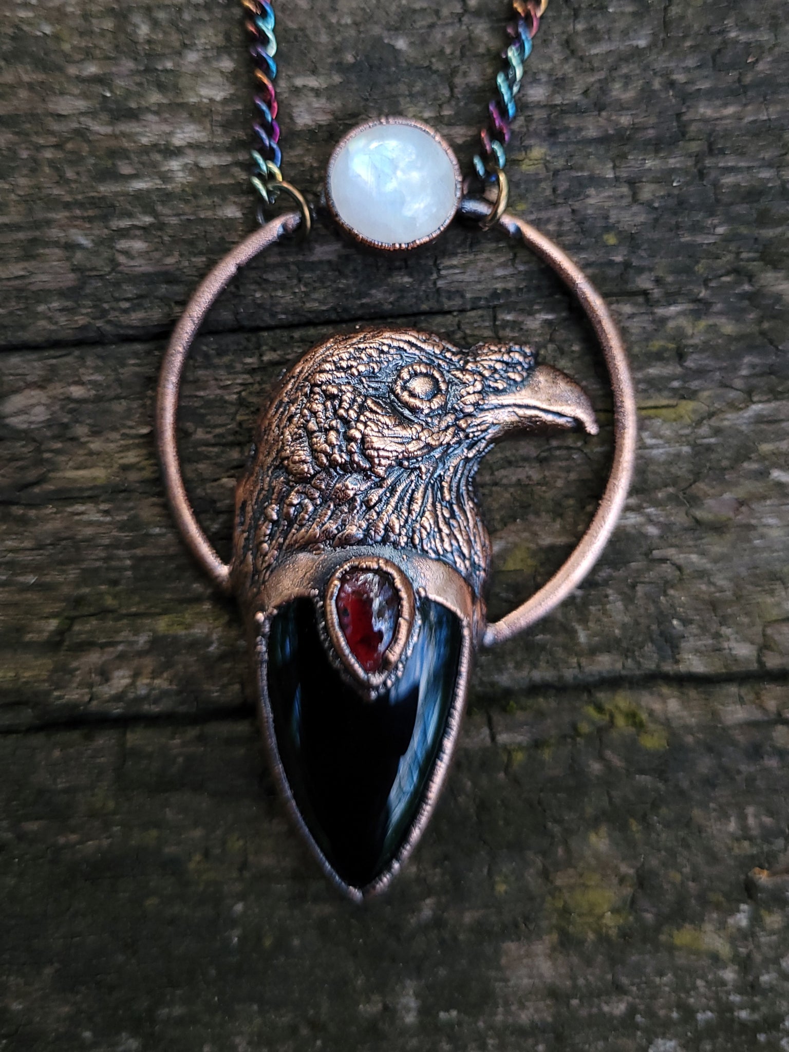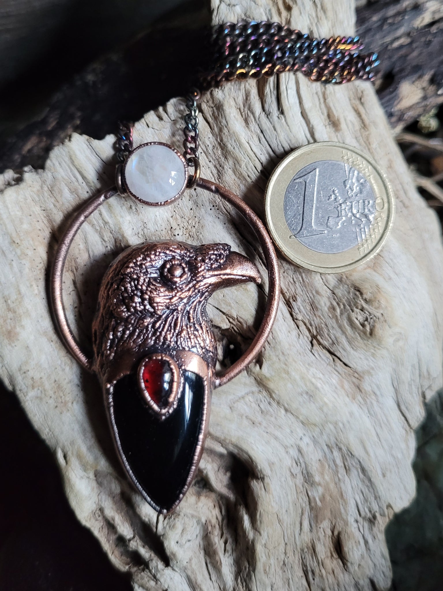 La maestria con cui la figura del corvo è modellata lascia senza fiato, l'espressione dell'animale è maestosa ed austera e indossare questo pezzo unico è un arricchimento per l'anima.